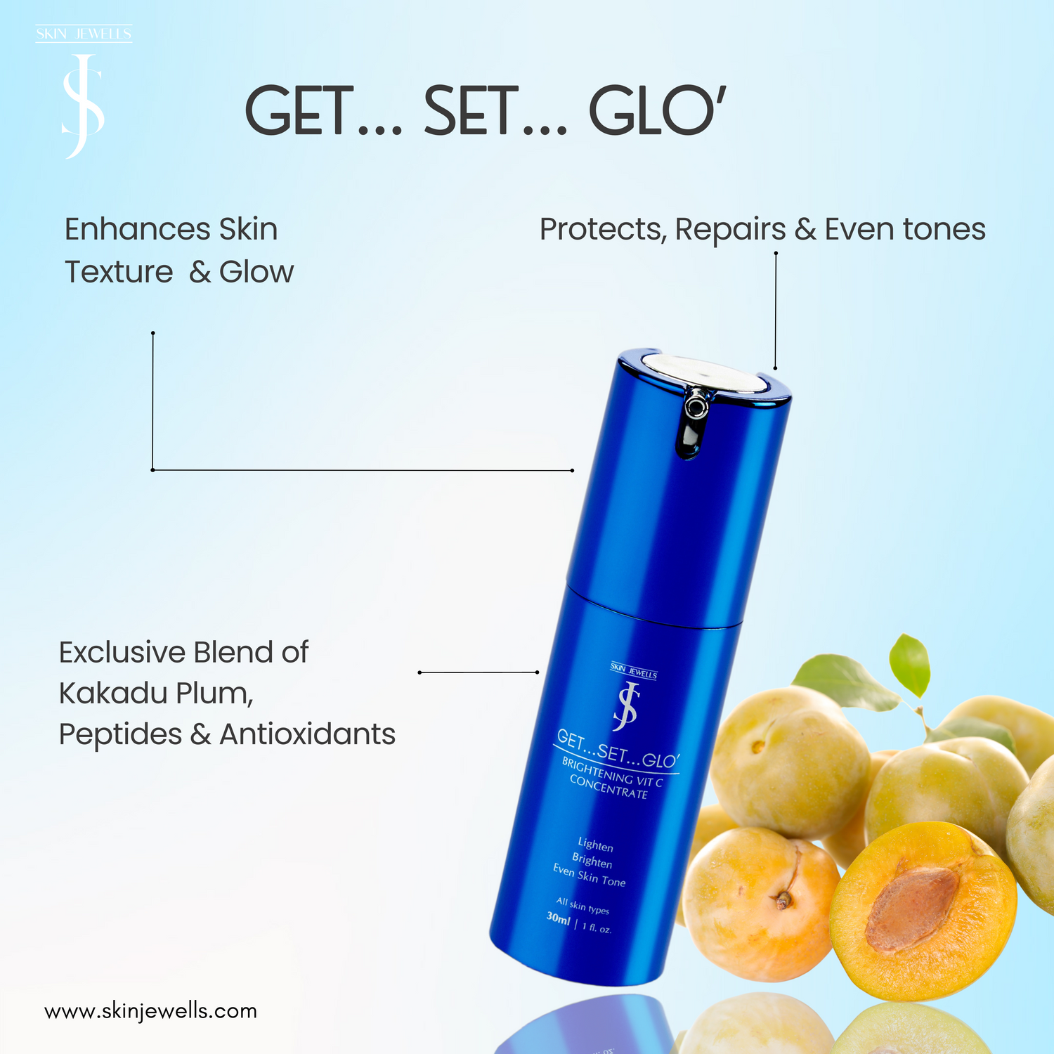 Elevate your skincare routine with "Get Set Glo'" and experience the magic of Skin Jewells as you journey towards timeless, luminous skin.